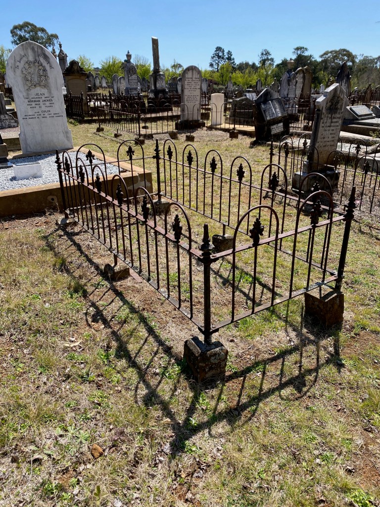 Months later, completely by chance, I came across John ‘Jock’ McDonald, from Oban Scotland, buried in the Presbyterian Section of the Armidale Cemetery. A decorative iron fence surrounds his unmarked grave, the identity and location of which was confirmed by Council records.